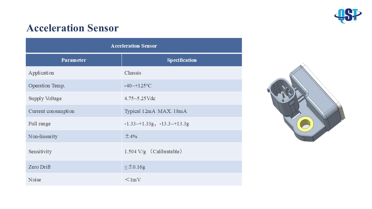 QMU801A is a 6-Axis attitude detection sensor capable of measuring the Yaw、Pitch、Roll and Ax, Ay, Az accelerations. Internal QST 6-Axis IMU chip, AEC-Q100 Grade2 qualified.